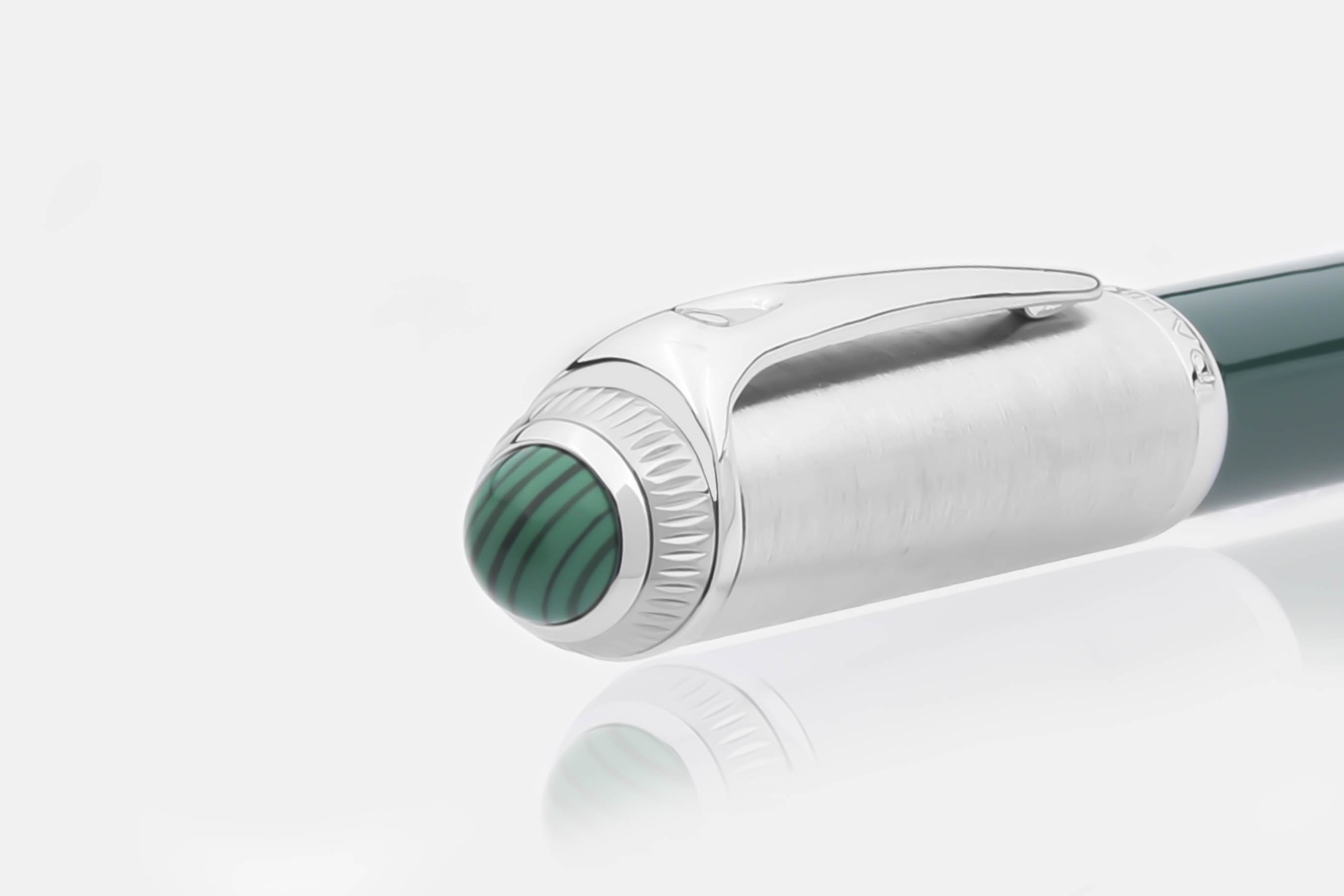 - اسم المنتج: قلم دهنج فضي وأخضر بحجر مالاكايت 74.