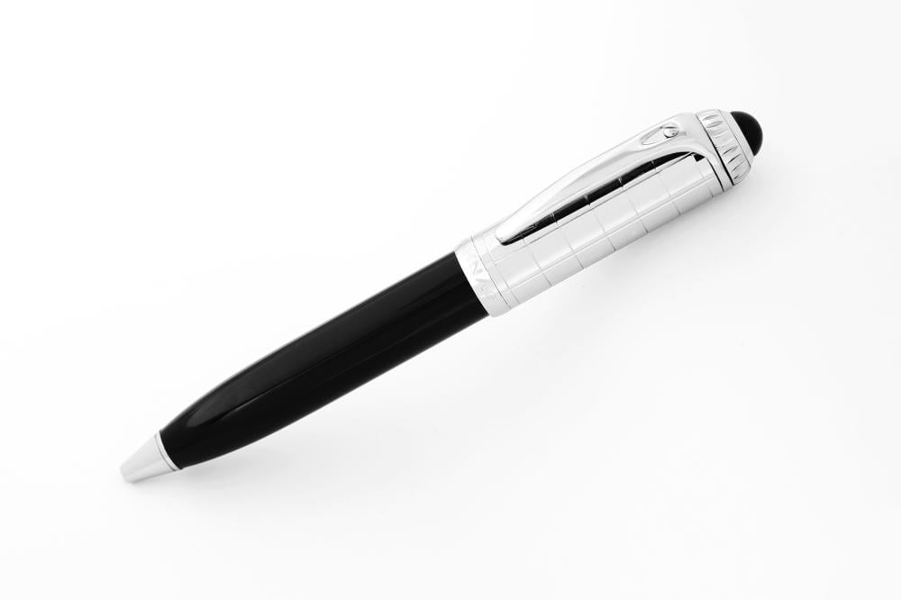 قلم رجالي فاخر من ماركة دهنج الخليجية، يجمع بين الأناقة والمتانة بفضل تصميمه العصري فضي و أسود . مصنوع من المعدن المطلي بالبلاديوم لمنح لمعان دائم ومقاومة عالية للصدأ والخدوش، مع زخارف فضية أنيقة تضفي عليه طابعاً فخماً ومميزاً.