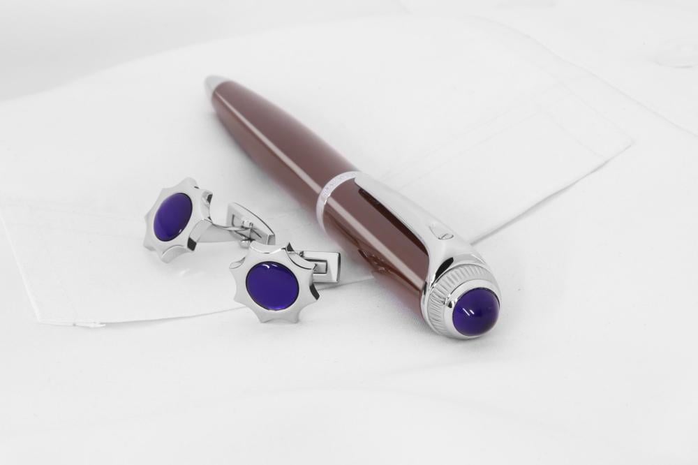 لعشاق اقتناء الإكسسورات القيمة اقتني أجود أنواع الإكسسورات الرجالية مع طقم قلم و كبك فضي و بني بحجر أزرق 101، حيث يتضمن الطقم أجود أقلام أقلام الحبر الفاخرة، القلم مصنوع من معدن مصقول ويحتوي على أقيم أنواع الأحجار الطبيعية ذات اللون الأزرق اللامع. كما يتميز الكبك أيضًا بتصميم جذاب حيث يكسبه اللون الفضي لمعان فوق الوصف بسبب استخدام مادة البلاديوم لطلائها حيث تضفي لمعانًا كبيرًا على لون الكبكات المختلفة.
