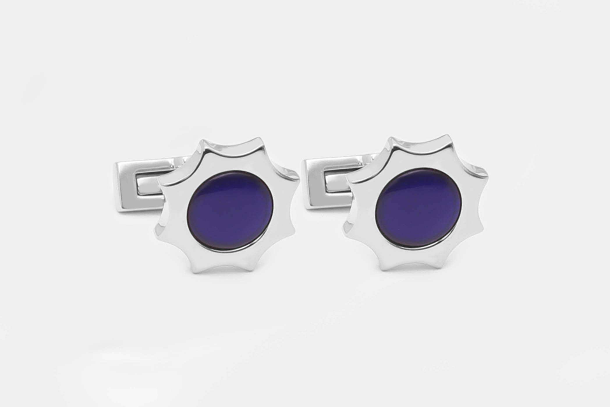 - الشكل: كبك سداسي على شكل نجمة فضية ويحتوي على حجر أزرق اللون.