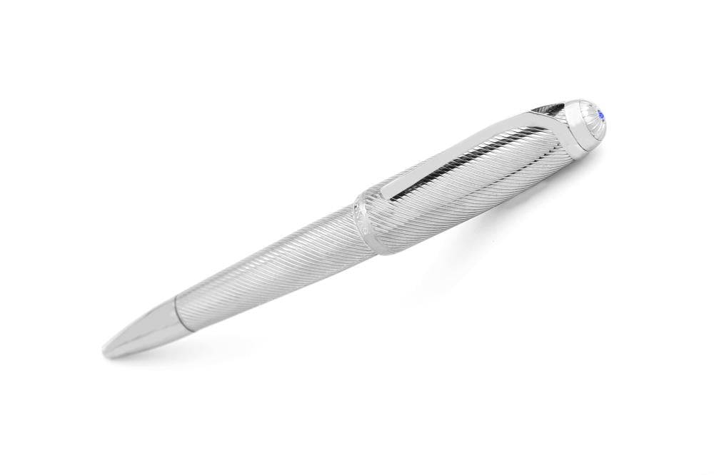 - اسم المنتج: قلم فضي ناحت كلاسيكي بكريستال أزرق 147.