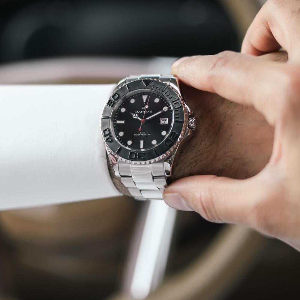 إذا كنت تبحث عن طقم ساعة رجالي يمنحك أفضل الإطلالة فإن طقم ساعة ستيل فضي وأسود هو أرقى خياراتك العصرية للأناقة والرقي. يتكون الطقم من ساعة وقلم وكبك ذو خامة عالية الجودة بالإضافة إلى تصميمه عصري الذي سيكسبك مظهر لائق وحضور مميز في جميع المناسبات.