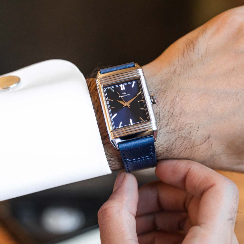 - سوار جلد إيطالي فاخر: بلون كُحلي أنيق ولمسة ناعمة فاخرة.