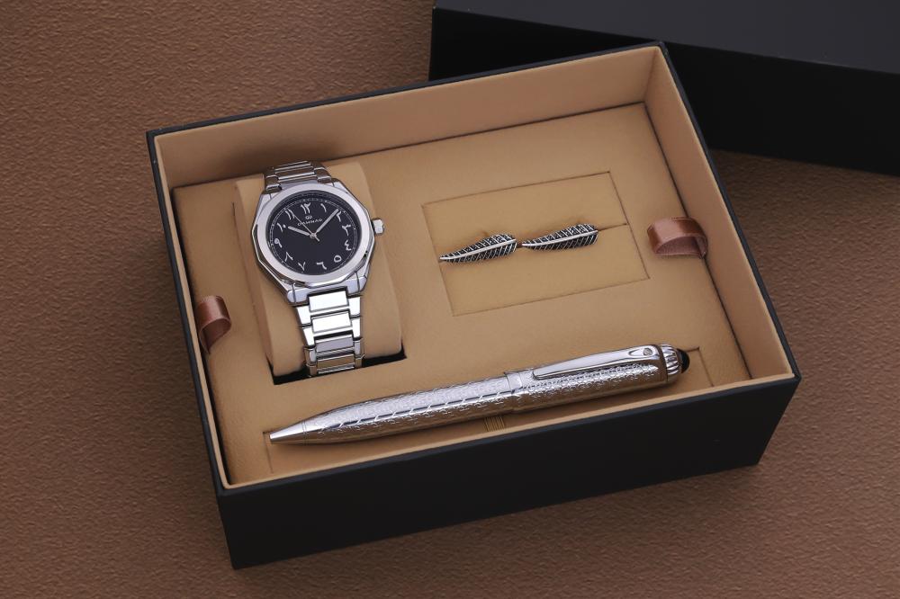 - هدية فاخرة ذات جودة عالية: يمكنك تقديم طقم قلم وساعة هدية فاخرة وأنيقة تعبر عن الكثير من الحب والتقدير.