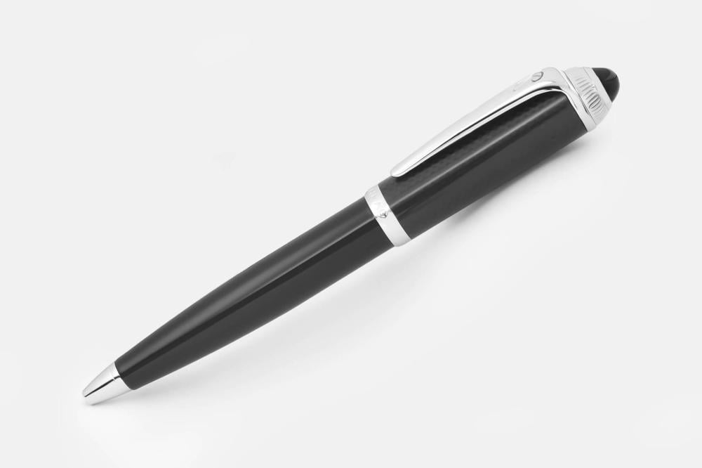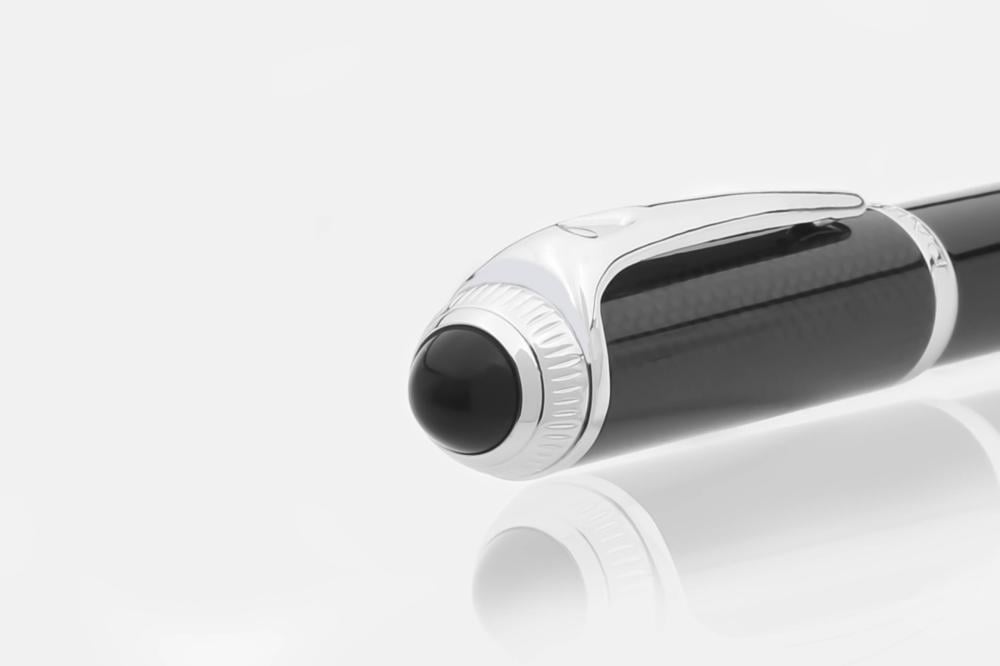 قلم حبر جاف (بولبوينت) من مجموعة دهنج غطاء وهيكل من المعدن المصقول والمزيّن بكاربون فايبر أسود فاخر و تفاصيل مطلية بالبلاديوم وحجر أونكس أسود