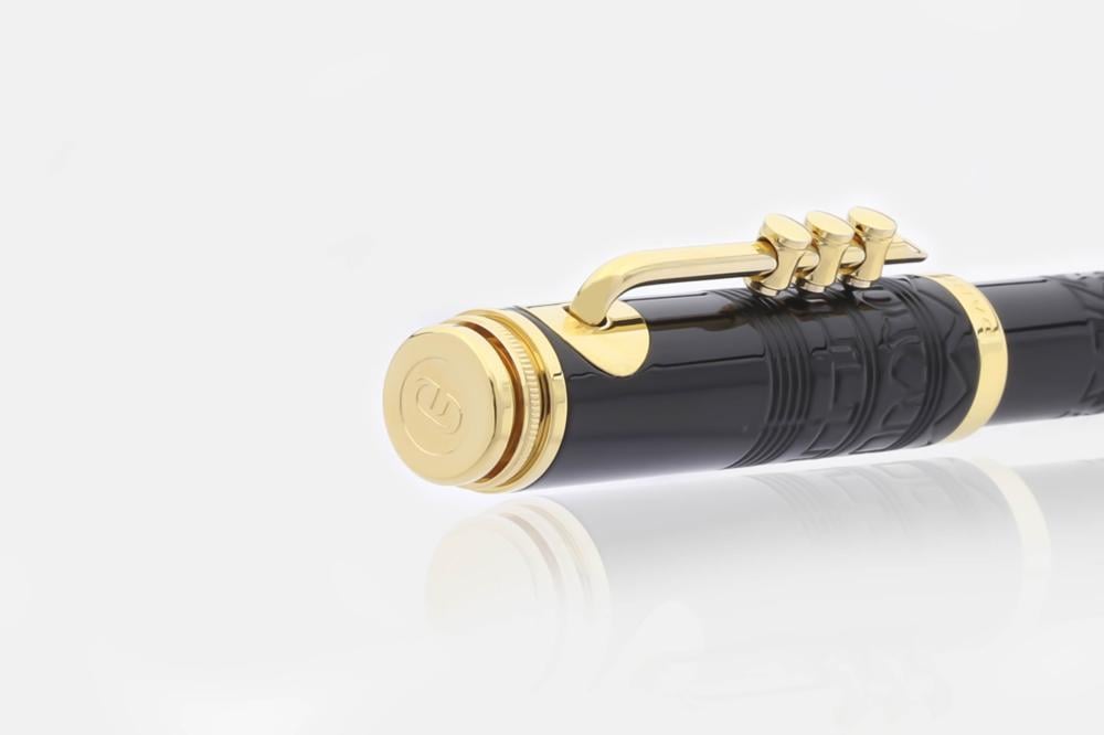 - قلم حبر ذهبي ذو تصميم فاخر: يكتسب ذلك القلم شكل جذاب بفضل تصميمه المميز حيث يأتي بزخرفة باللونين الذهبي والأسود تَضفي عليه طابع راقي وفخم.