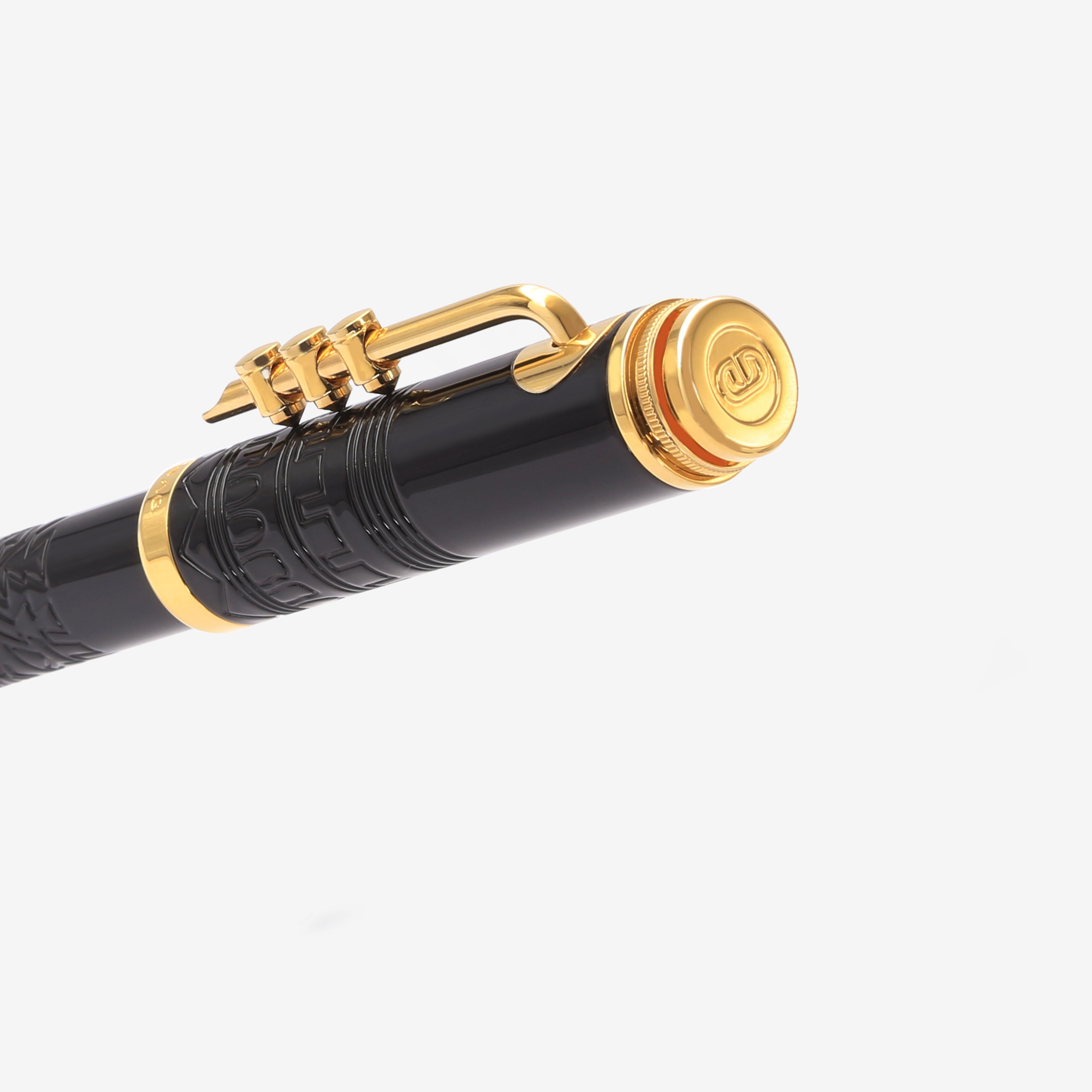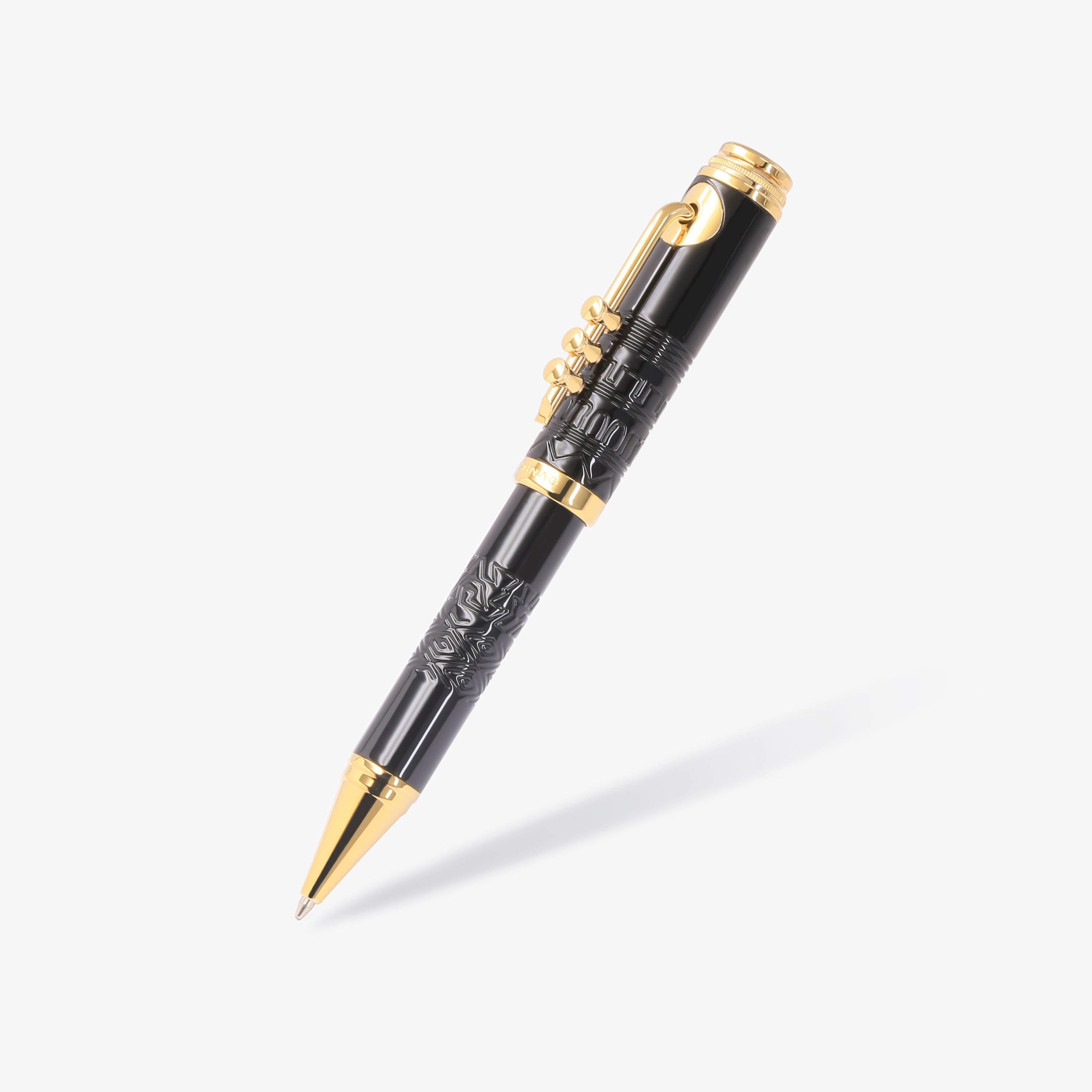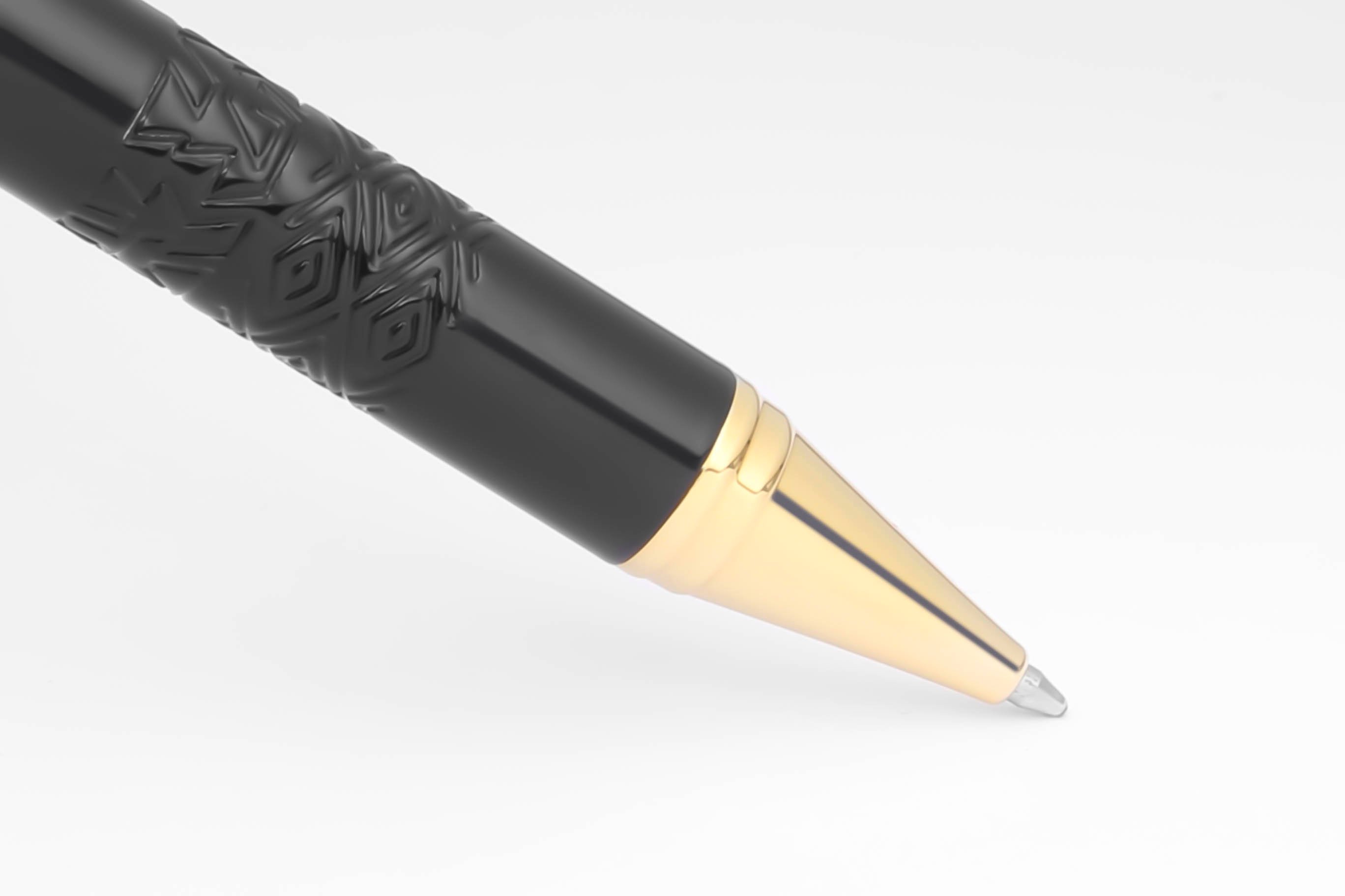 - قلم حبر ذهبي ذو تصميم فاخر: يكتسب ذلك القلم شكل جذاب بفضل تصميمه المميز حيث يأتي بزخرفة باللونين الذهبي والأسود تَضفي عليه طابع راقي وفخم.