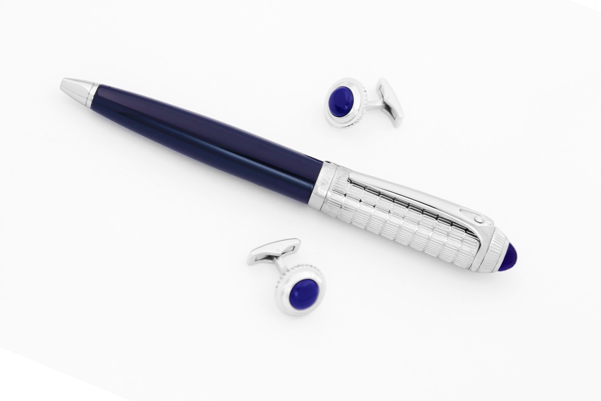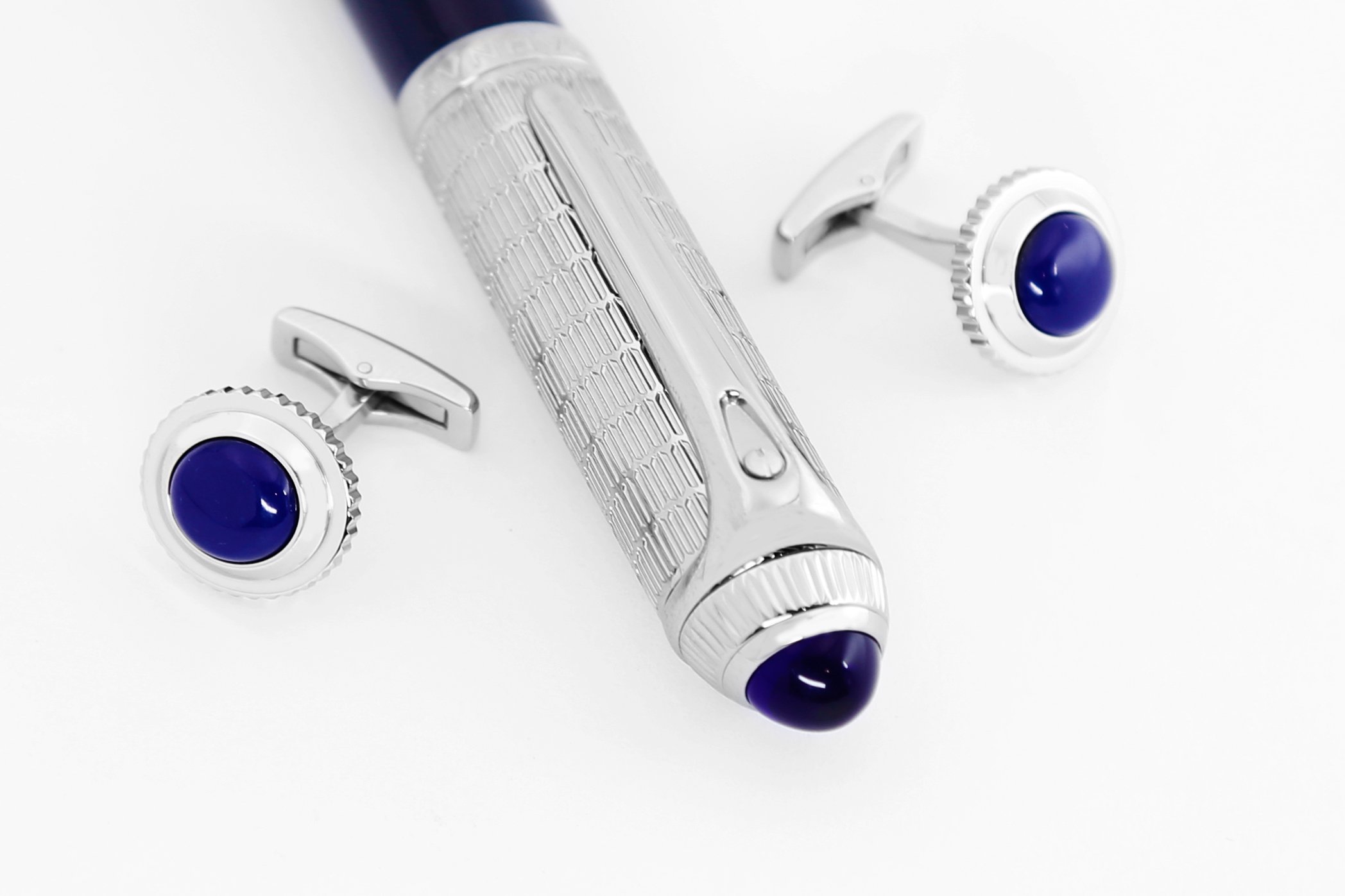 - اسم المنتج: طقم قلم وكبك فضي وكحلي – 80