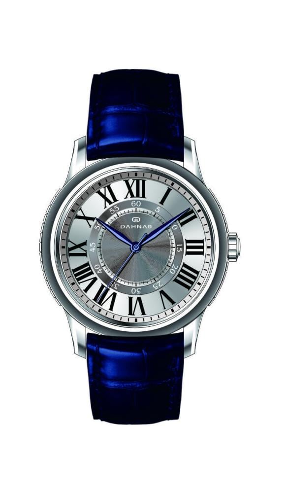 - اللون: ساعة جلد أزرق وميناء فضي.