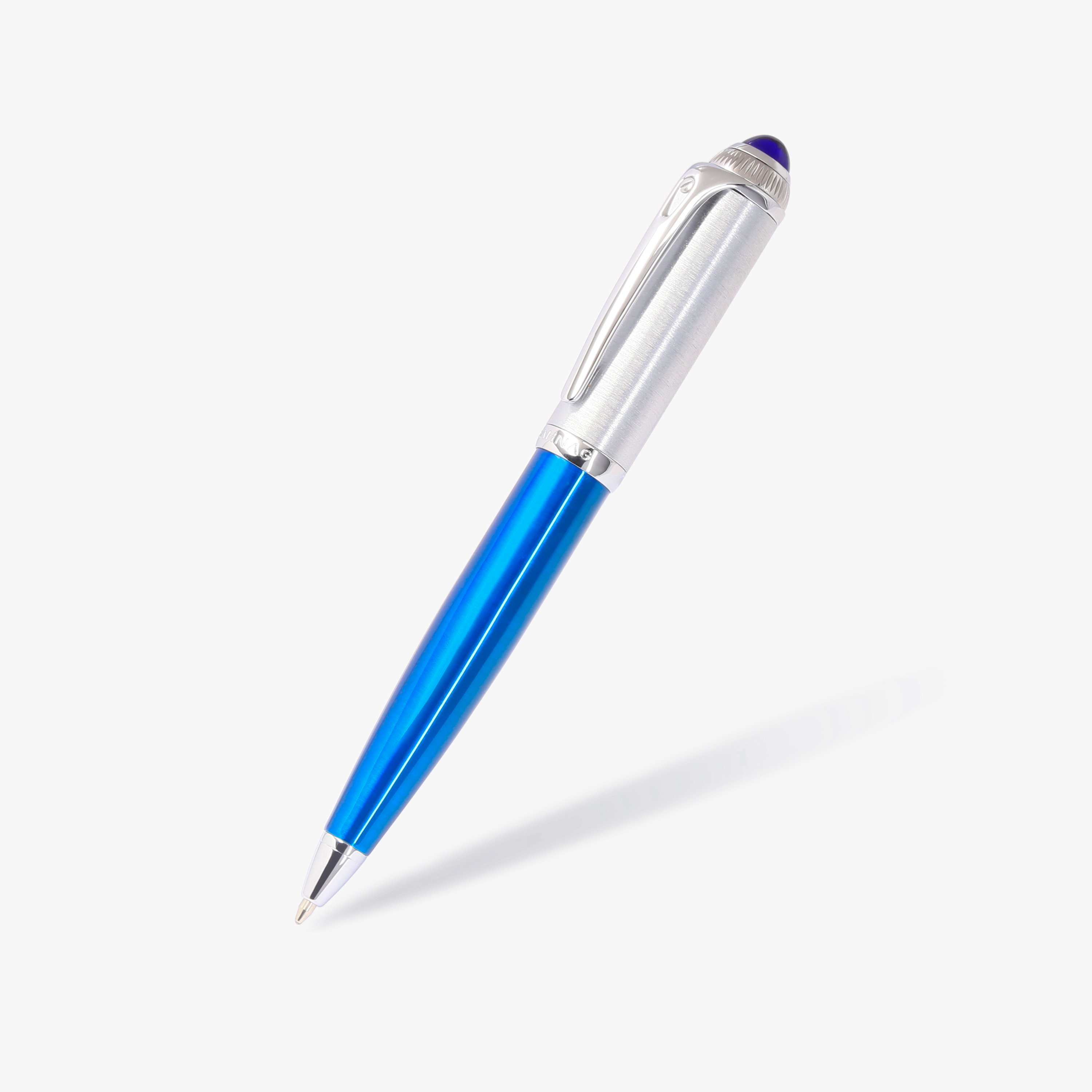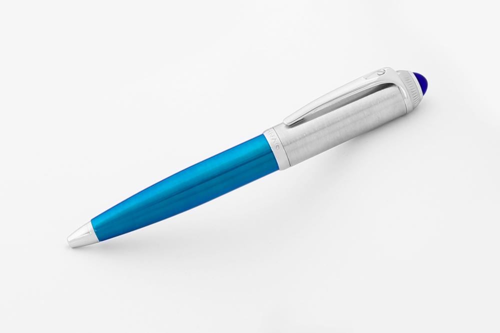 قلم حبر جاف (بولبوينت) من مجموعة دهنج غطاء وهيكل من المعدن المصقول بالفضي والمزيّن بالنيلي و تفاصيل مطلية بالبلاديوم وحجر طبيعي أزرق