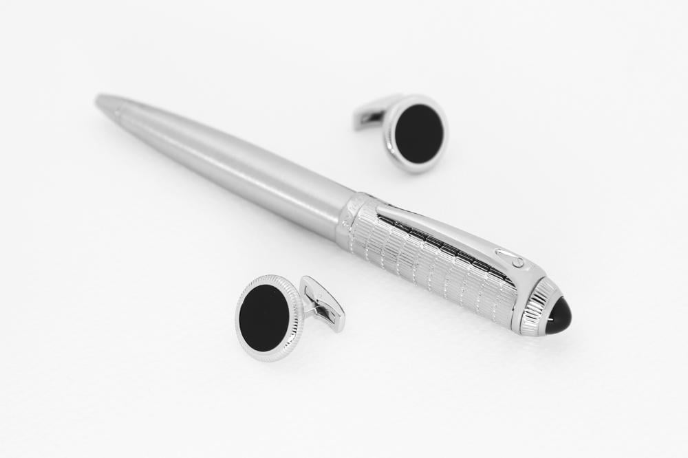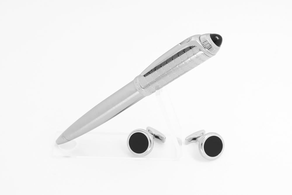مكونات الطقم: قلم رجالي فاخر + كبك فضي بحجر أونكس