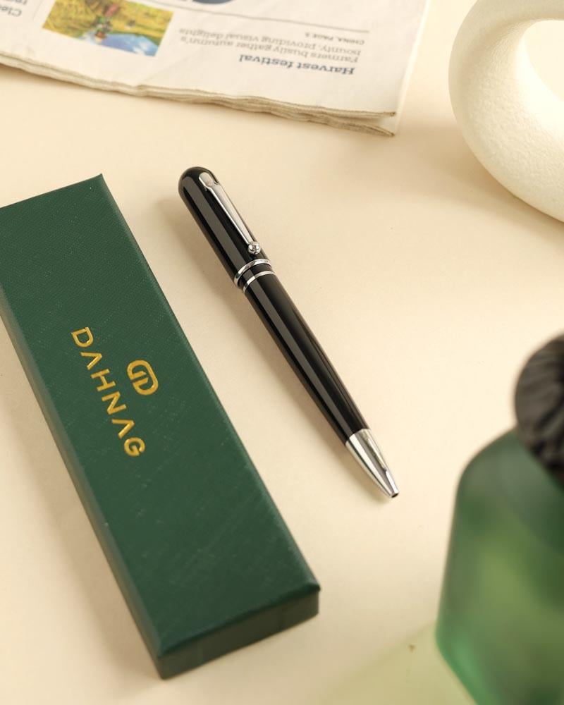 قلم “D” يجمع بين أناقة اللونين الفضي والأسود لتمنحك قطعة كتابة تُشبه الإكسسوار الفاخر. هيكل معدني مطلي بالبلاديوم يلمع بوقار ويقاوم الخدش، وتفاصيل متقنة في المشبك والحلقة الوسطى تمنح القلم توازناً بصرياً ولمسة فخمة في اليد. مع كل سطر، ينساب الحبر بسلاسة ليترك أثراً واضحاً أنيقاً—كتابة عملية بذوق رفيع.
