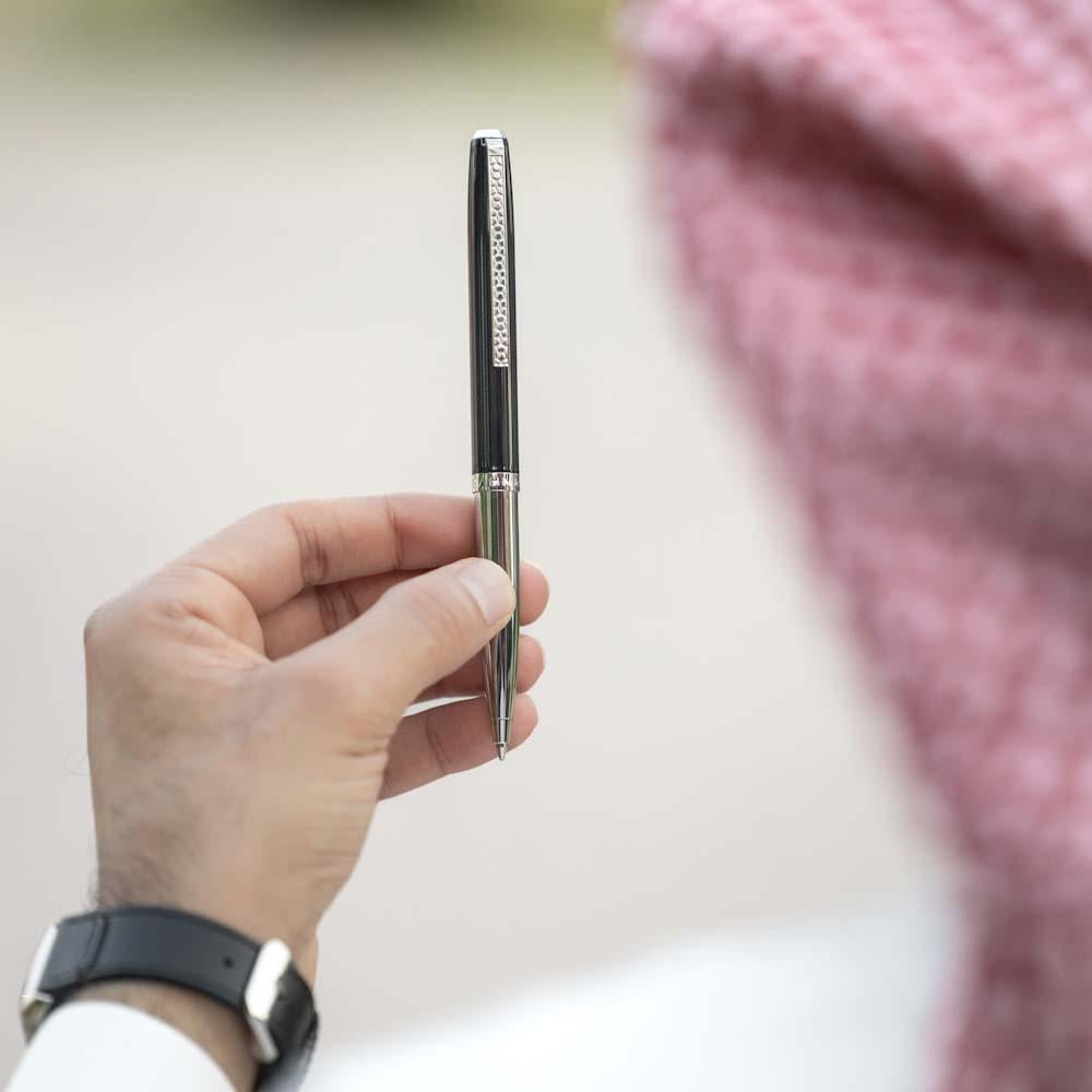 قلم فضي وأسود فاخر بتصميم إيطالي حصري لماركة دهنج.